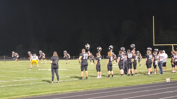 October 3, 2025: Adrian, MO 64720 Adrian Blackhawks (Adrian, MO) followers were happy Friday as they witnessed their football squad smash the visiting Versailles Tigers (Versailles, MO), 61-0 in a league match.