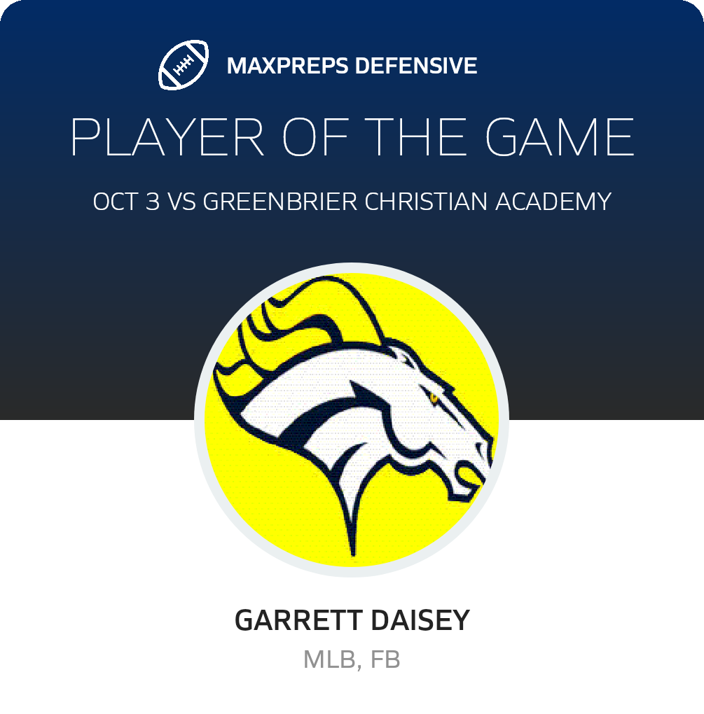 Coming up next, the Gators battle the Fishburne Military Caissons (Waynesboro, VA) in a non-league contest, on Friday, October 10. Greenbrier Christian Academy will attempt to advance on its 3-4 season record. The Caissons go into the bout with a 3-1 record after their 66-24 league win over Randolph-Macon Academy (Front Royal, VA).