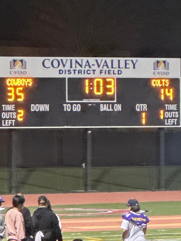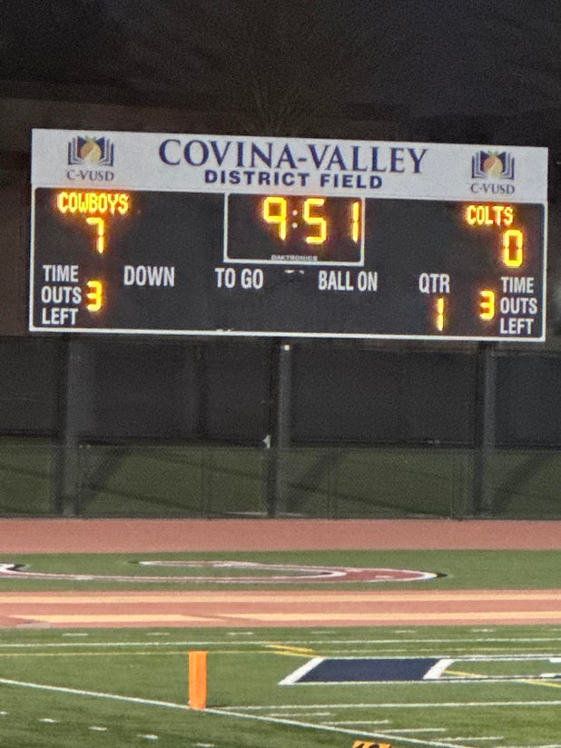 October 3, 2025: Covina, CA 91723 In Friday's league game, the Chino Cowboys (Chino, CA) football team overcame the host Covina Colts (Covina, CA), by a tally of 49-27.