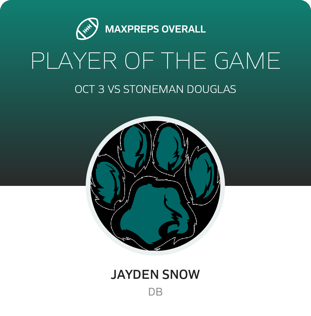 October 3, 2025: Coral Springs, FL 33065 The Coral Glades Jaguars (Coral Springs, FL) football knocked off the visiting Stoneman Douglas Eagles (Parkland, FL), 20-7 in Friday's league contest.