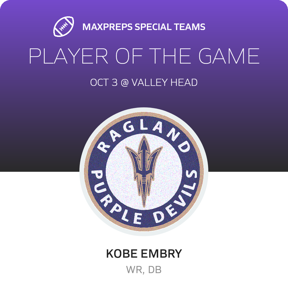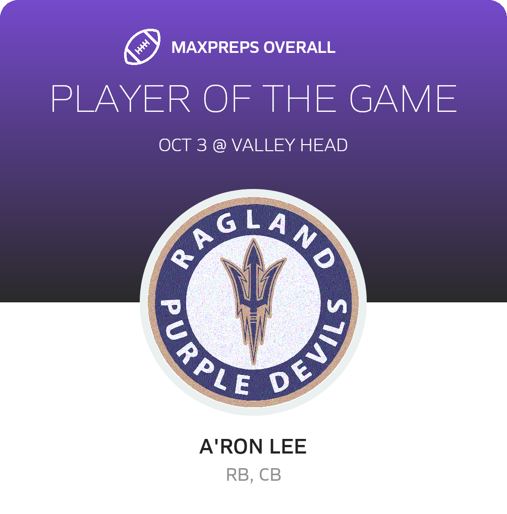 The Purple Devils now sport a 2-4 record. They take the field next when they host Appalachian for a 1A Region 8 outing on Friday, October 10. Ragland will clash with a Eagles squad coming off a 21-8 league win over Spring Garden (Spring Garden, AL). The Eagles record now stands at 7-0.