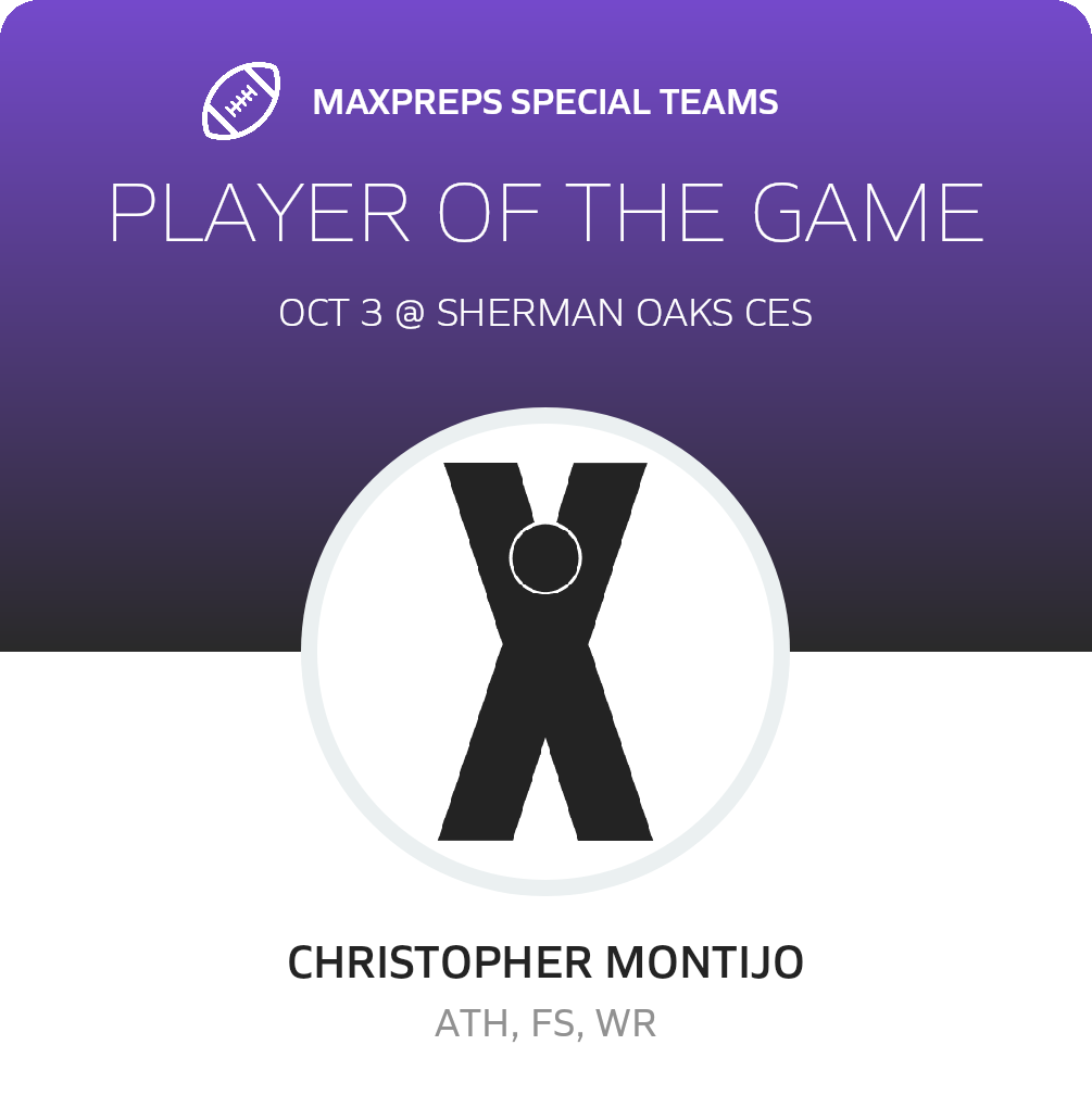 With the win, Sherman Oaks CES advances its record to 5-0 on the season. The Knights travel to Valley Oaks CES (Sun Valley, CA) to encounter the Vanguards in a Valley (8 Man) bout on Friday, October 10. The Vanguards go into the bout with a record of 5-1. Valley Oaks CES won 62-32 in their recent non-league bout against Lighthouse Christian (Santa Monica, CA)