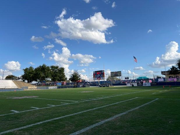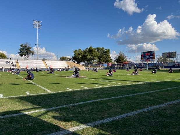 The wind is picking up with 27 minutes to game start.