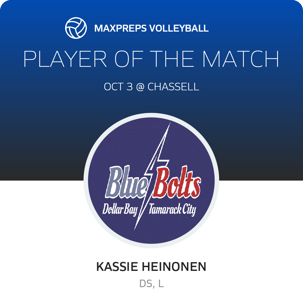 October 3, 2025: Chassell, MI 49916 The Chassell Panthers volleyball squad (Chassell, MI), dropped 3-0 in Friday's league battle with the visiting Dollar Bay Bays (Dollar Bay, MI)