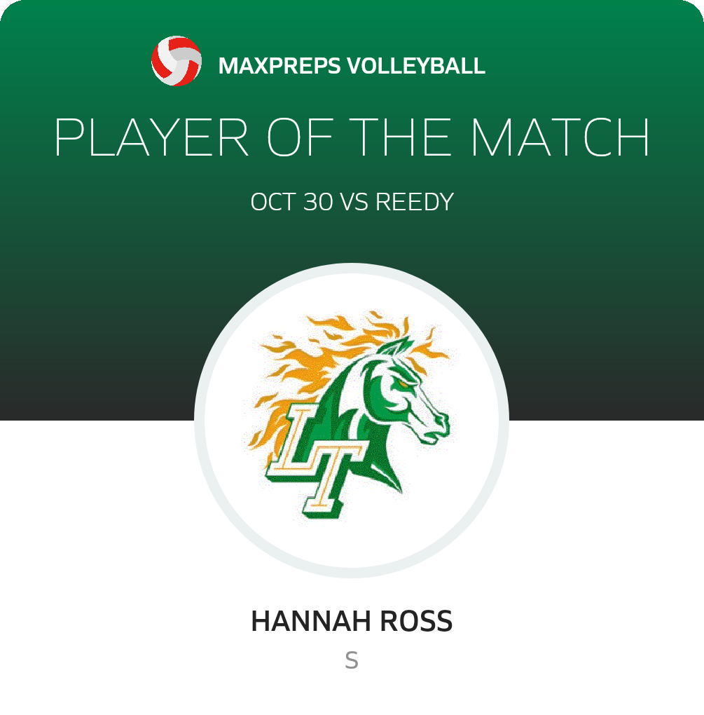 Congratulations to #8 Hannah Ross for being selected the Lebanon Trail Volleyball Player of the Match.