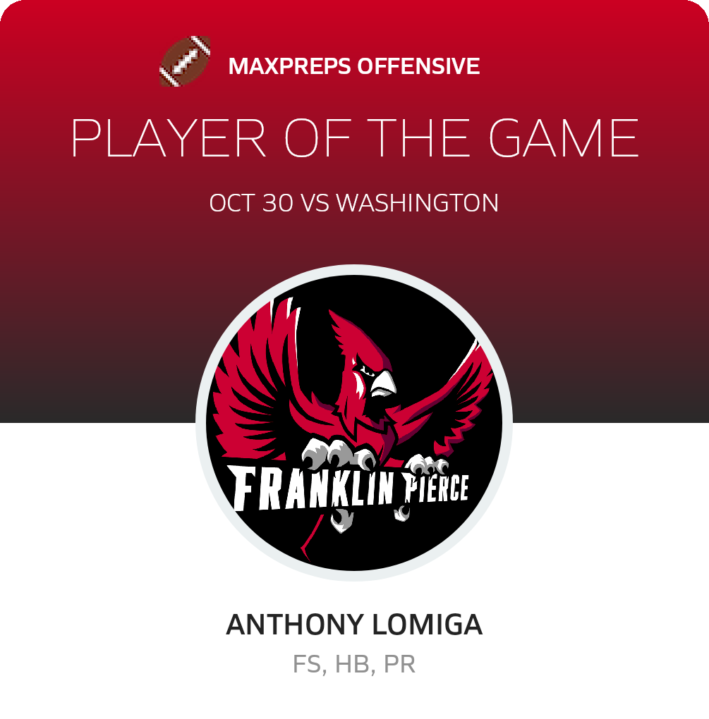 October 30, 2024: Tacoma, WA 98445 The Washington Patriots football team (Tacoma, WA), was crushed 52-7 in Wednesday's league bout with the host Franklin Pierce Cardinals (Tacoma, WA)