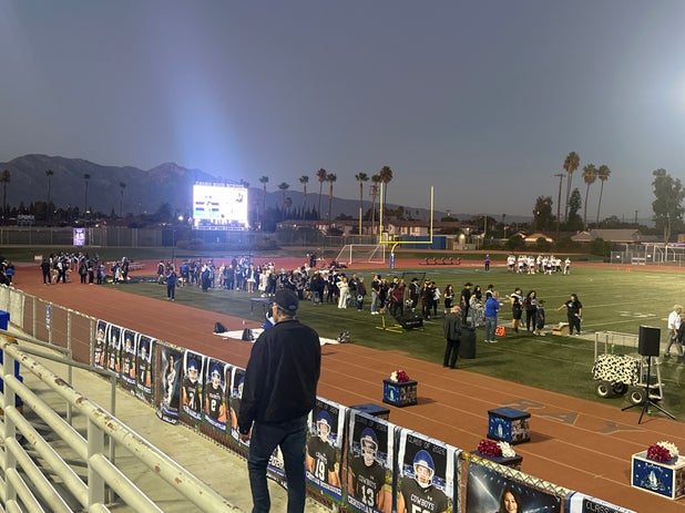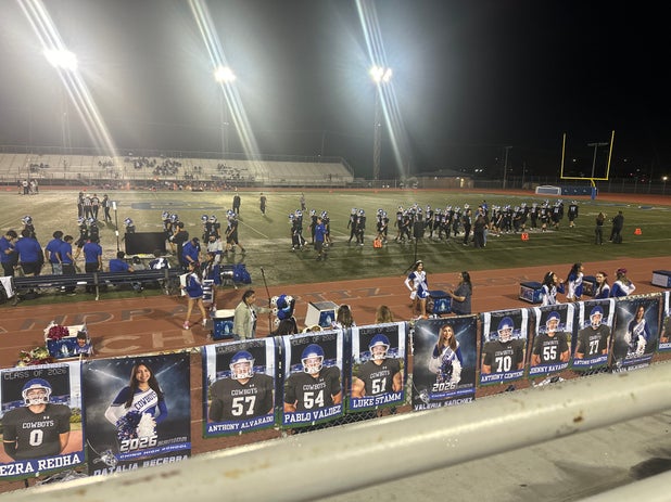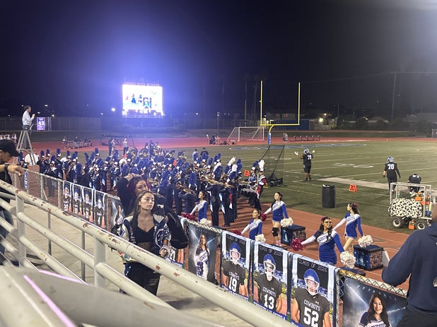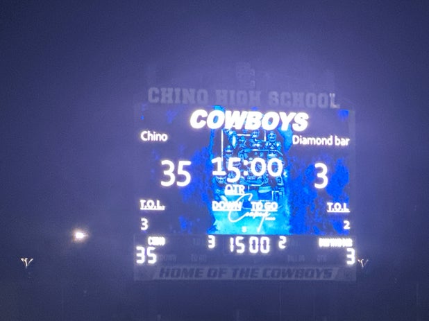 October 30, 2025: Chino, CA 91710 Chino Cowboys (Chino, CA) fans went home in high spirits Thursday as they saw their football team triumph over the visiting Diamond Bar Brahmas (Diamond Bar, CA), 42-9 in a league battle.