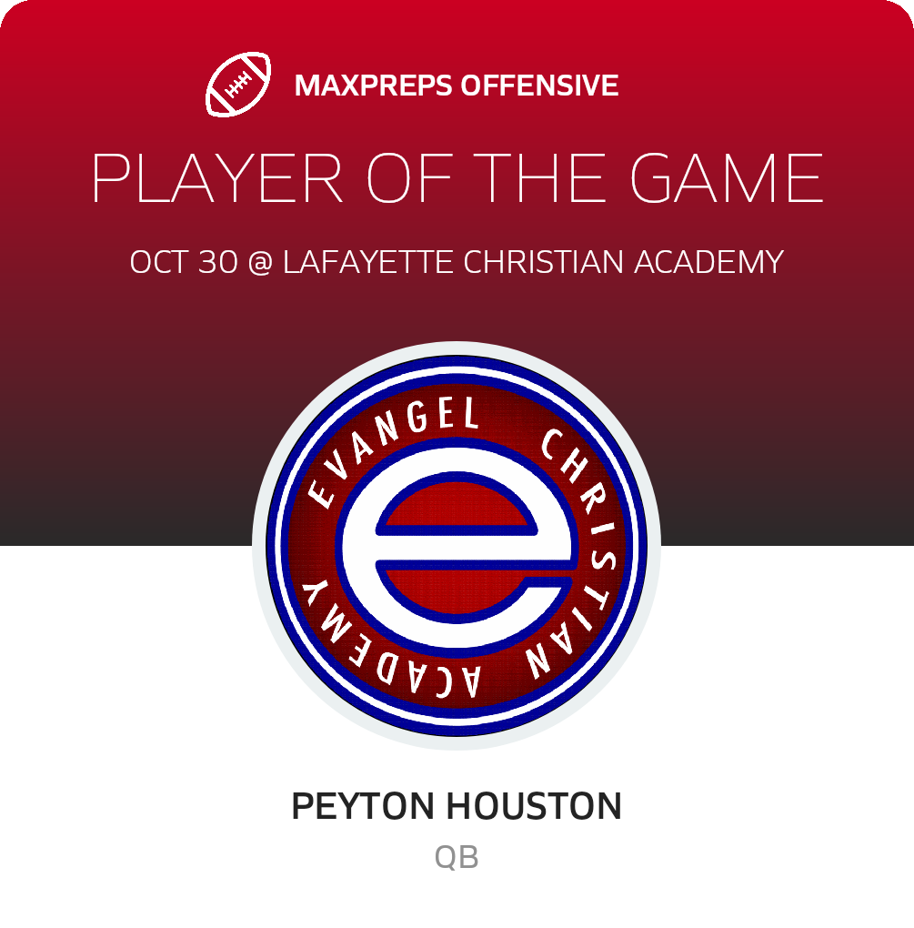The Eagles now own a 7-2 record. They put it on the line next when they host Parkway for a 5A District 1 contest on Friday, November 7. Evangel Christian Academy will confront a Panthers squad coming off a 58-42 league win over Benton (Benton, LA). The Panthers record now stands at 9-0.