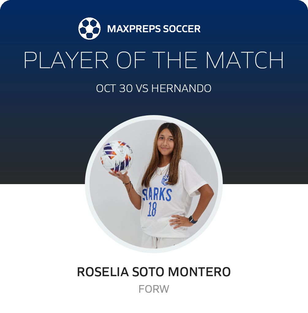 Congratulations to #18 Roselia Soto Montero for being selected the Anclote Girls Soccer Player of the Match.