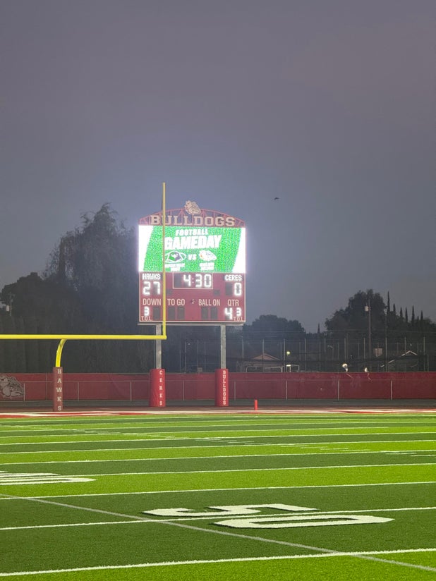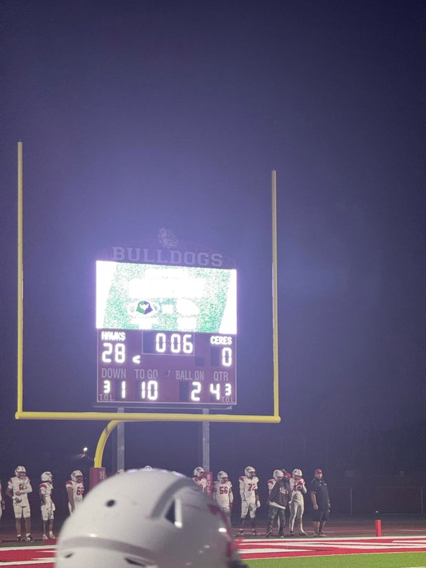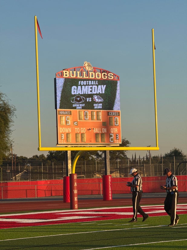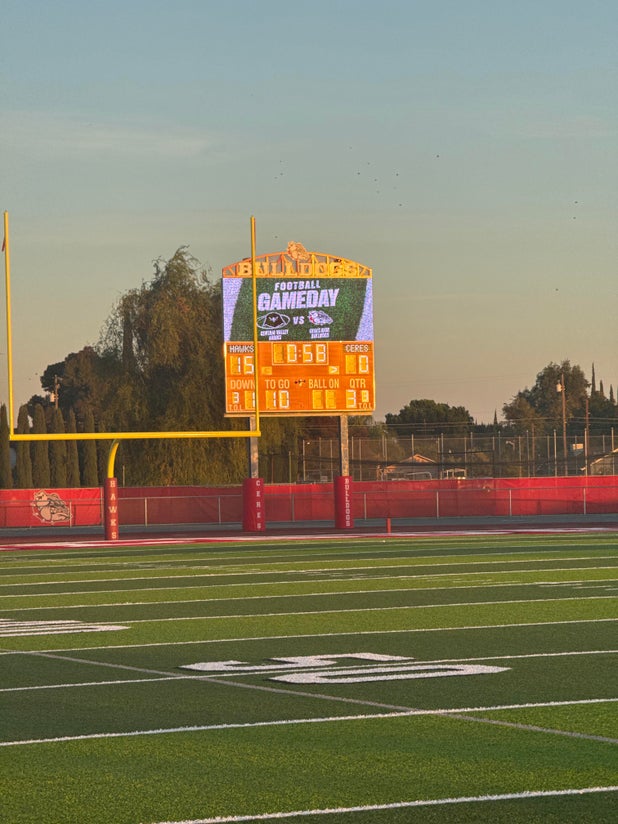 October 30, 2025: Ceres, CA 95307 The crowd at Thursday's league contest between the Central Valley Hawks (Ceres, CA) and the visiting Ceres Bulldogs (Ceres, CA), witnessed Central Valley's football squad topple Ceres by a tally of 28-0.