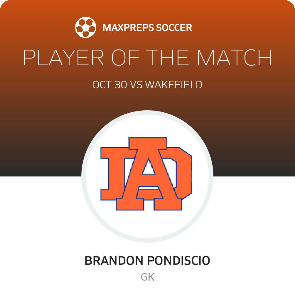 Congratulations to #1 Brandon Pondiscio for being selected the Athens Drive JV Soccer Player of the Match.