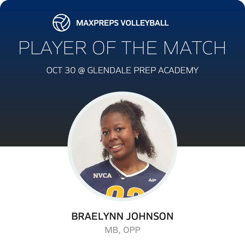 Congratulations to #23 Braelynn Johnson for being selected the North Valley Christian Academy Volleyball Player of the Match.