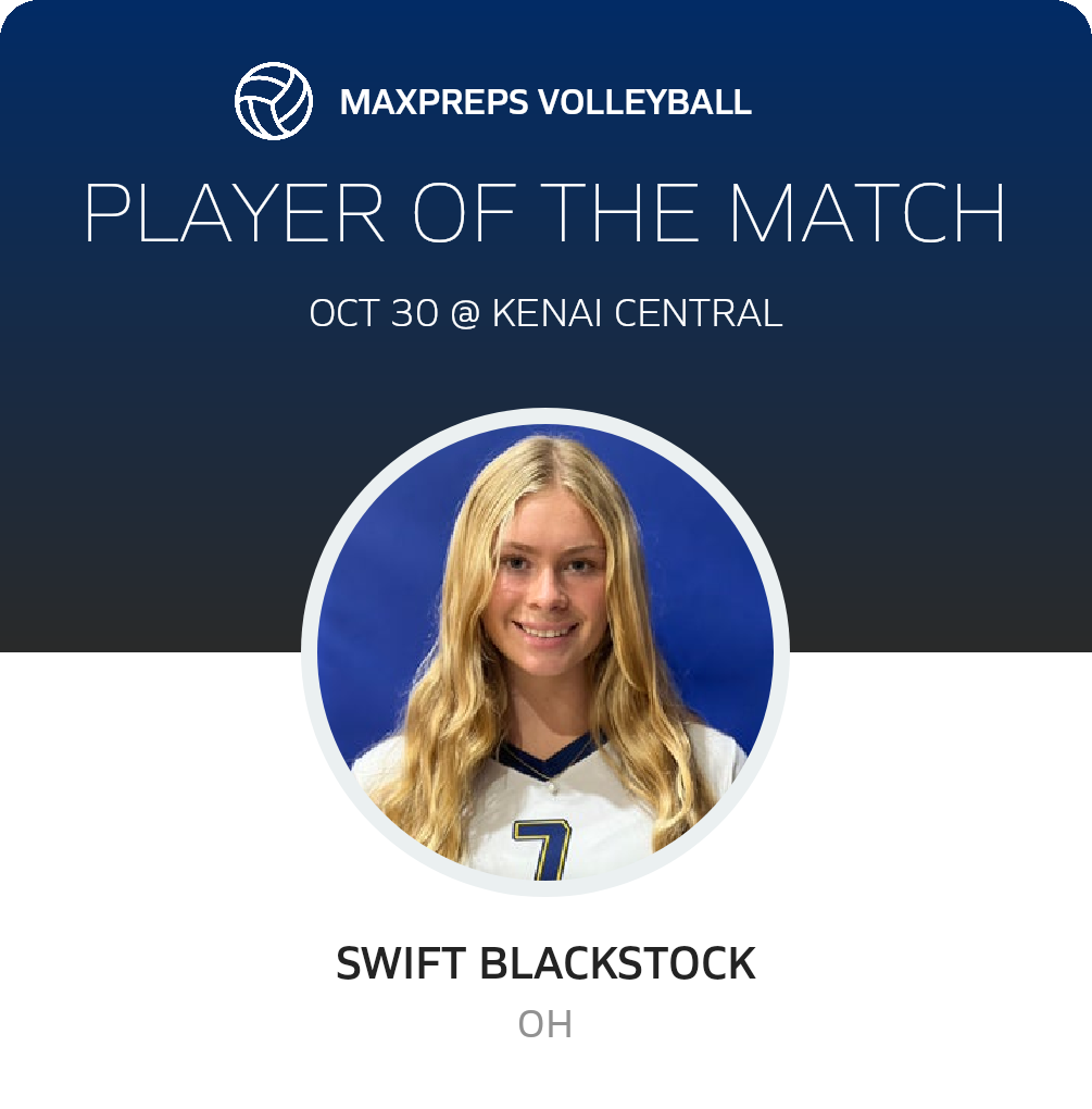 Congratulations to #7 Swift Blackstock for being selected the Homer Volleyball Player of the Match.