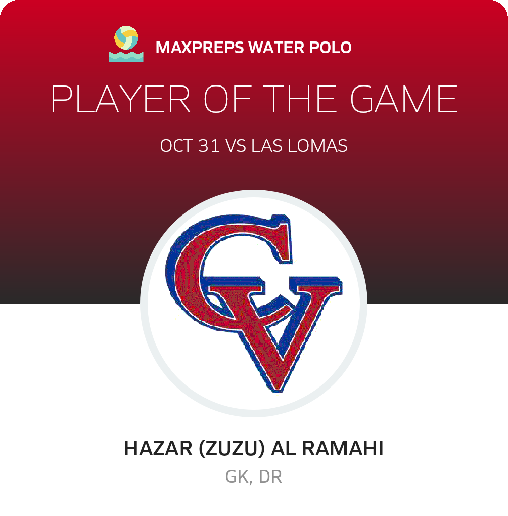 Congratulations to #1A/5 Hazar (Zuzu) Al Ramahi for being selected the Clayton Valley Charter Girls JV Water Polo Player of the Game.