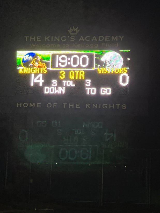 In their next game, the Knights battle the Capuchino Mustangs (San Bruno, CA) in a Peninsula - De Anza game, on Friday, November 7. King's Academy will attempt to move on its 8-1 season record. The Mustangs come into the outing with a 2-7 record after their 35-0 league loss to San Mateo (San Mateo, CA).