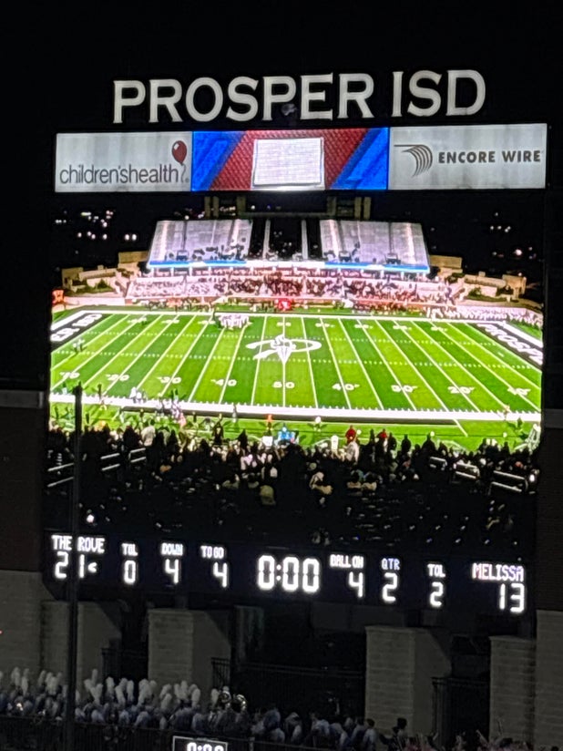 October 31, 2025: Prosper, TX 75078 The Melissa Cardinals football team (Melissa, TX), was tipped 38-35 in Friday's league bout with the host Walnut Grove Wildcats (Prosper, TX)
