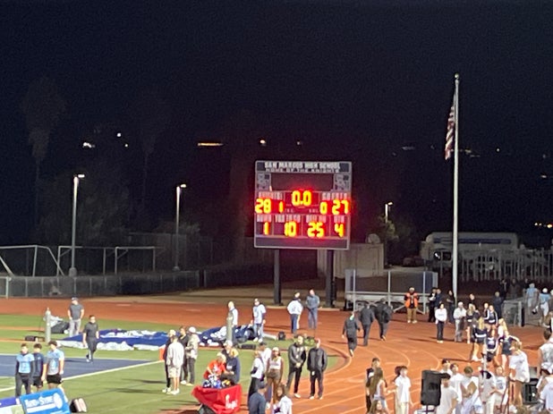 The San Marcos (CA) varsity football team lost Friday's home conference game against Mission Hills (San Marcos, CA) by a score of 28-21.