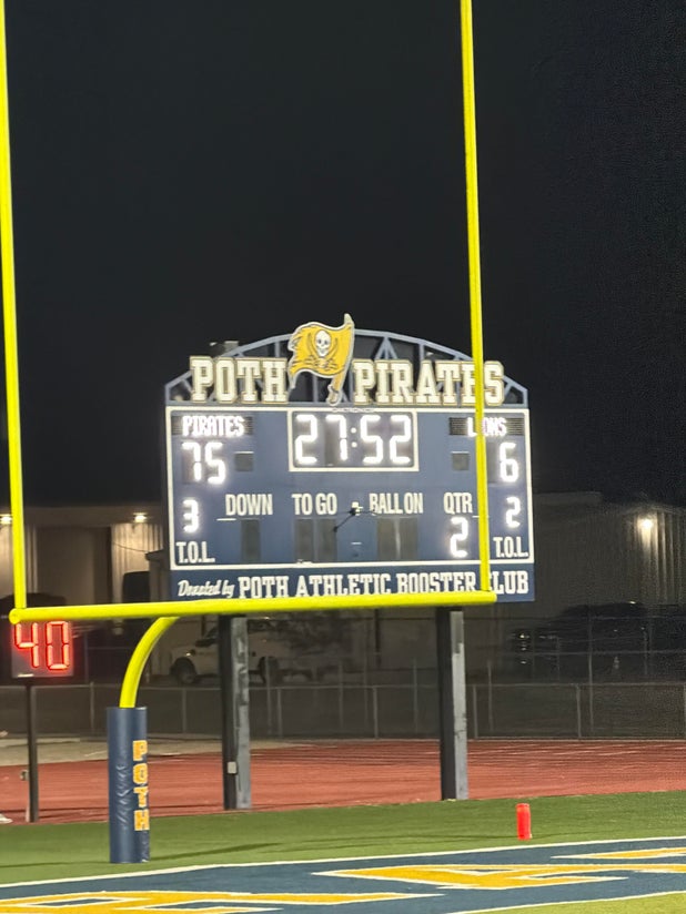 October 31, 2025: Poth, TX 78147 In Friday's league match, the host Poth Pirates football squad scored a decisive 81-6 win over the Young Men's Leadership Academy .