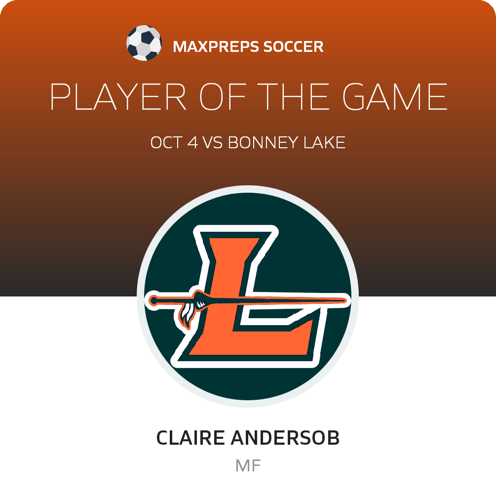 Congratulations to #8 Claire Anderson for being selected the Lakes Girls Soccer Player of the Match.