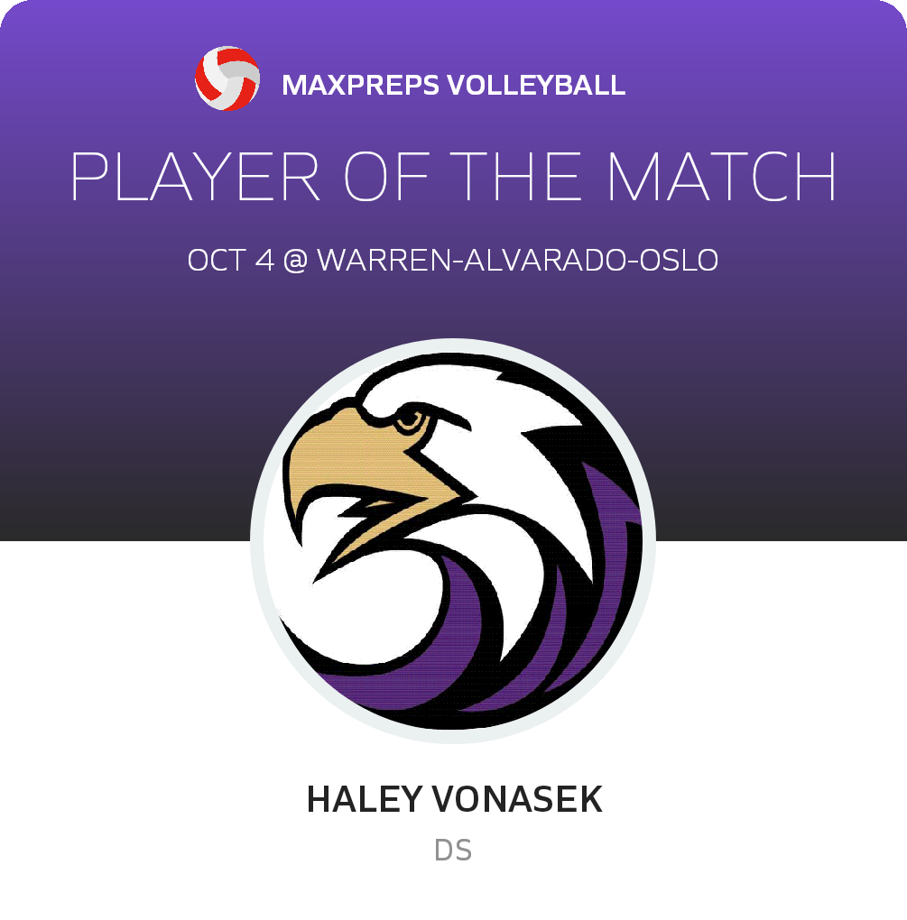 The Sacred Heart Eagles volleyball team scored 3 points and limited the host Warren-Alvarado-Oslo Ponies to 0 in the Eagles league victory on Tuesday.