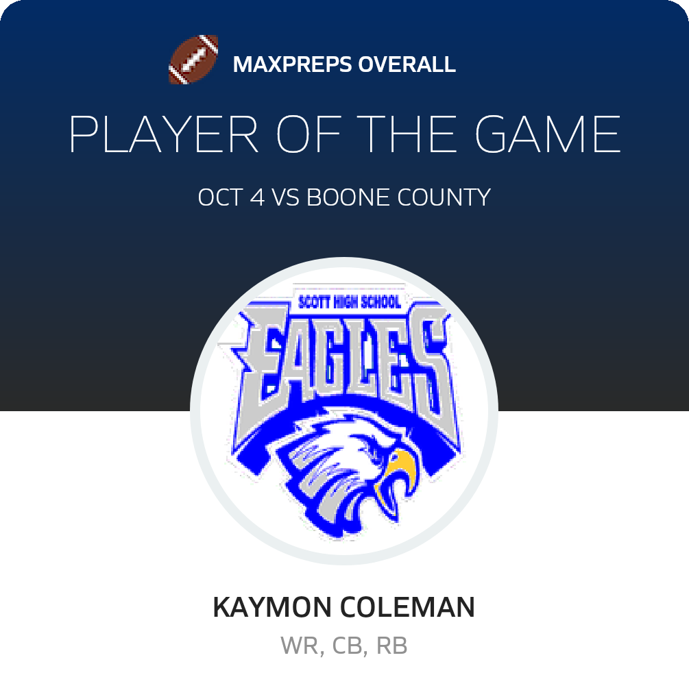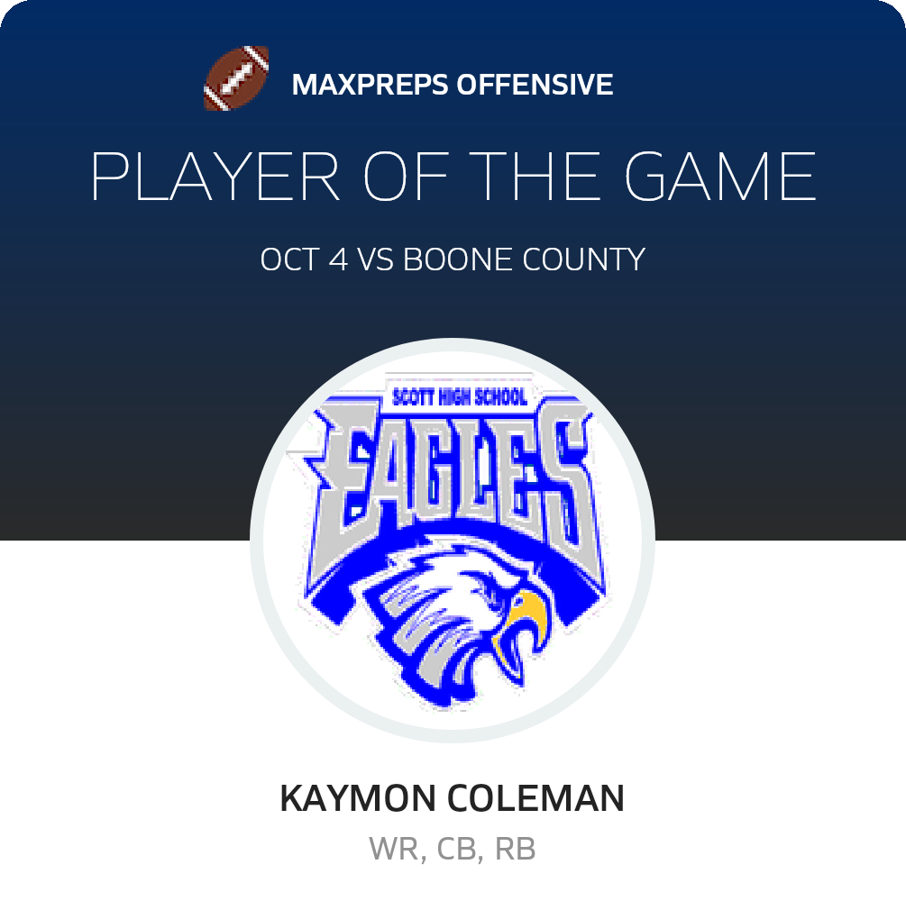 In their next game, the Eagles battle the Cooper Jaguars (Union, KY) in a 5A District 6 game, on Friday, October 11. Scott will attempt to better on its 2-4 season record. The Jaguars enter the game with a 7-0 record after their 42-17 league win over Conner (Hebron, KY).