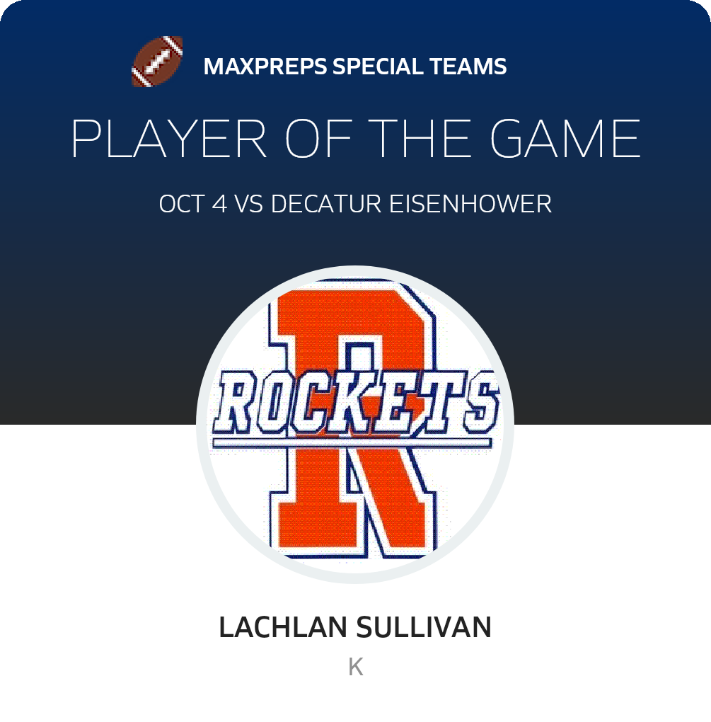 In their next game, the Rockets face the Decatur Eisenhower Panthers (Decatur, IL) in a Central State Eight - East challenge, on Monday, October 7. Rochester will attempt to improve on its 4-2 season record. The Panthers go into the challenge with a 0-6 record after their 55-0 league loss to Rochester (Rochester, IL).