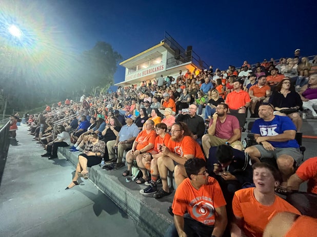 October 4, 2024: Mount Dora, FL 32757 The crowd at Friday's non-league contest between the Mount Dora Hurricanes (Mount Dora, FL) and the visiting Matanzas Pirates (Palm Coast, FL), witnessed Mount Dora's football squad wallop Matanzas by a tally of 36-0.