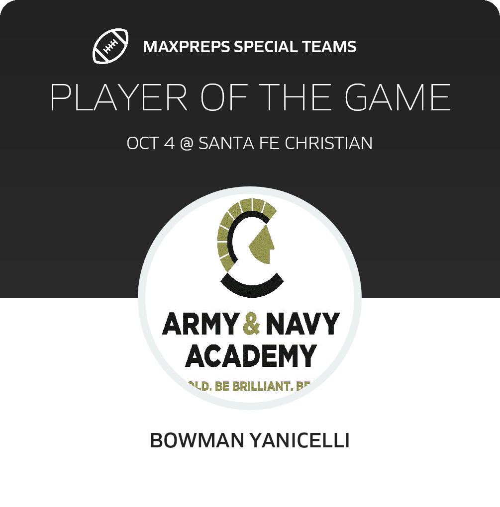 October 4, 2025: Solana Beach, CA 92075 The Santa Fe Christian Eagles were winner over the visiting Army-Navy Warriors football squad by a margin of 35-20 in Saturday's league test.