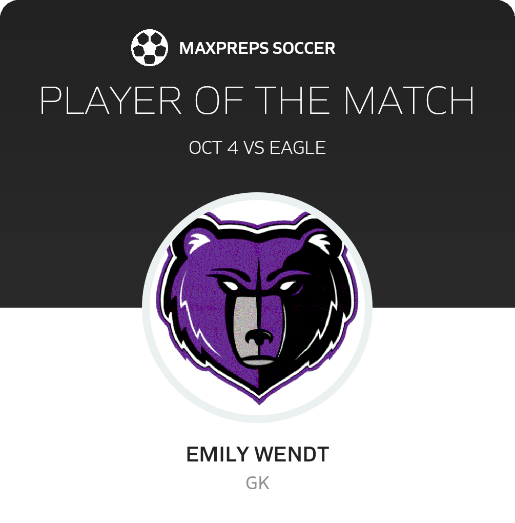 Congratulations to #0 Emily Wendt for being selected the Rocky Mountain Girls Soccer Player of the Match.