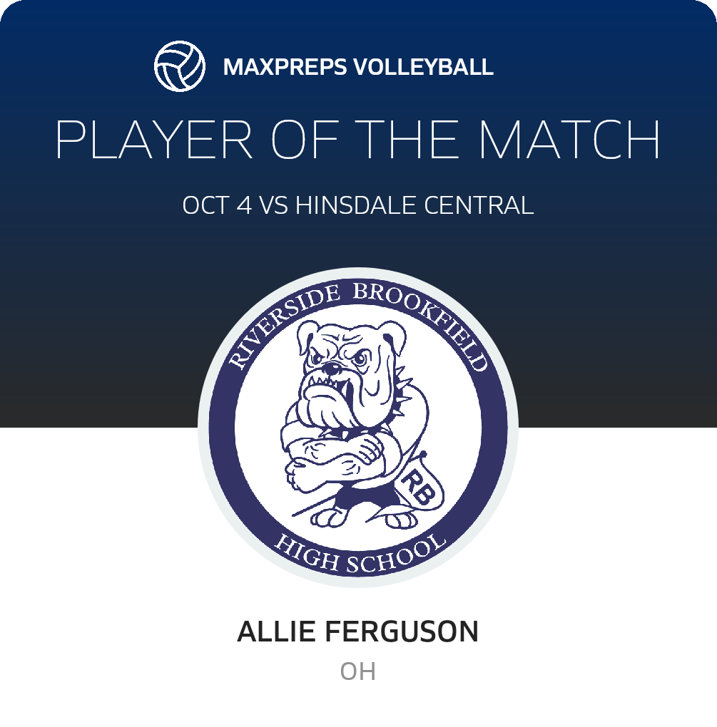 Congratulations to #1 Allie Ferguson for being selected the Riverside-Brookfield JV Volleyball Player of the Match.