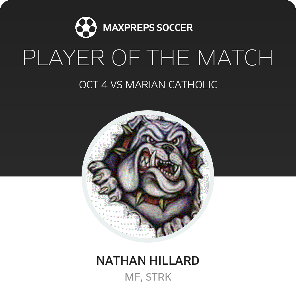 Congratulations to #10 Nathan Hillard for being selected the Tri-Valley Soccer Player of the Match.