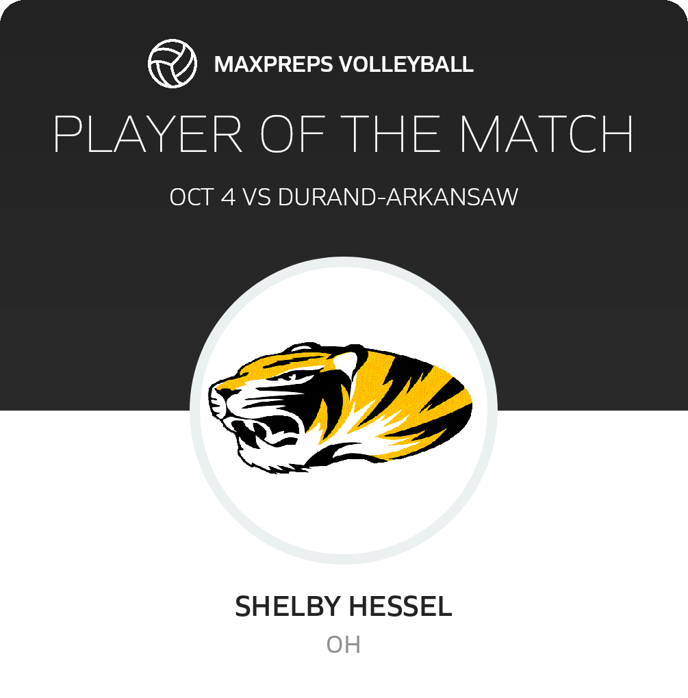 October 4, 2025: Durand, WI 54736 Northwestern Tigers (Maple, WI) backers were pleased Saturday as they witnessed their volleyball team overcome the host Durand-Arkansaw Panthers (Durand, WI), 2-0 in a non-league challenge.