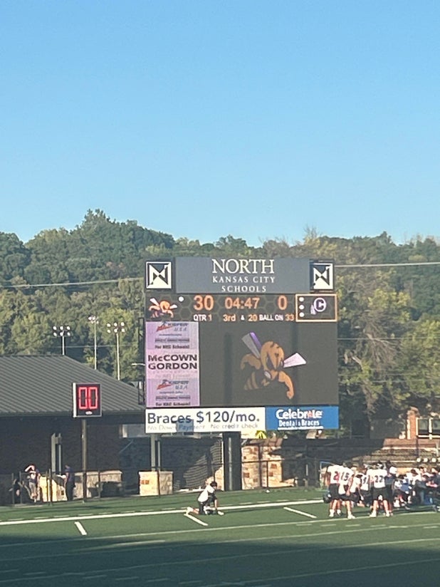 October 5, 2023: North Kansas City, MO 64116 In Thursday's non-league match, the host North Kansas City Hornets football squad scored a good 30-14 victory over the Central Indians.