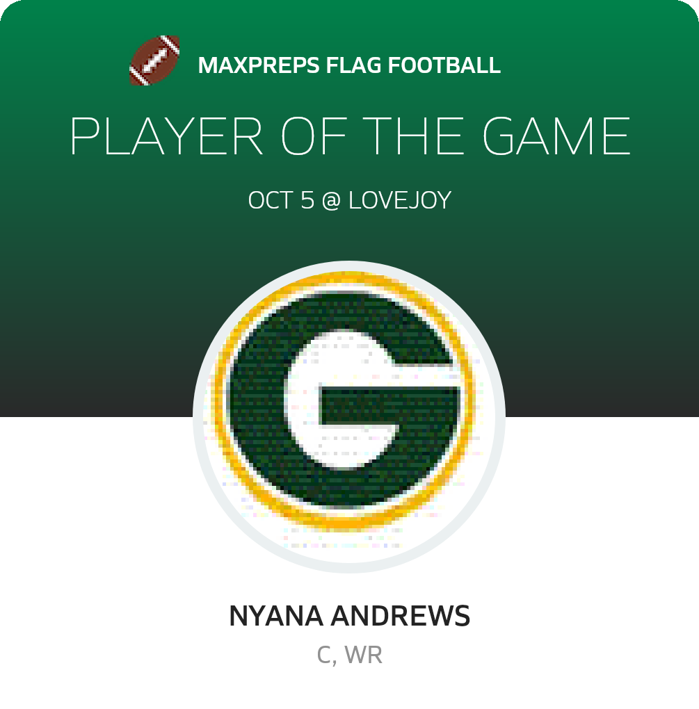 Congratulations to #21 Nyana Andrews for being selected the Griffin Girls Flag Football Player of the Game.