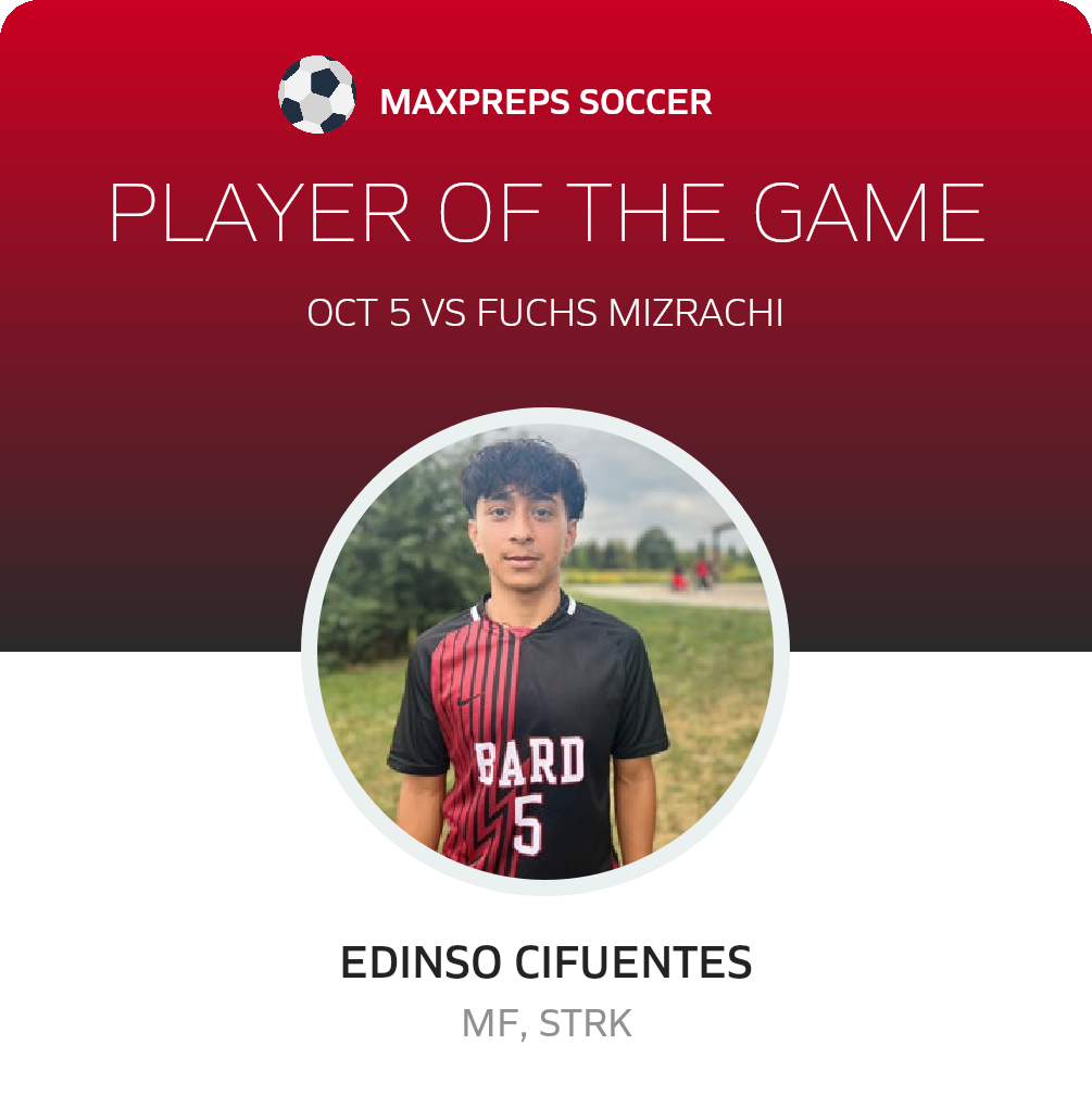 Congratulations to #5 Edinso Cifuentes for being selected the Bard Early College Soccer Player of the Match.
