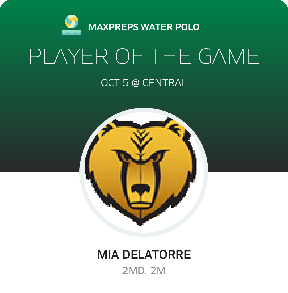 Congratulations to #15 Mia DeLaTorre for being selected the Sierra Pacific Girls Water Polo Player of the Game.
