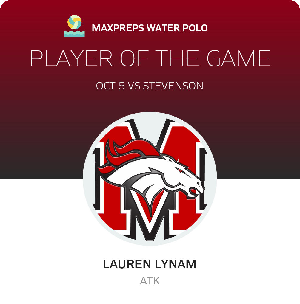 Congratulations to #6 Lauren Lynam for being selected the Monte Vista Girls Water Polo Player of the Game.