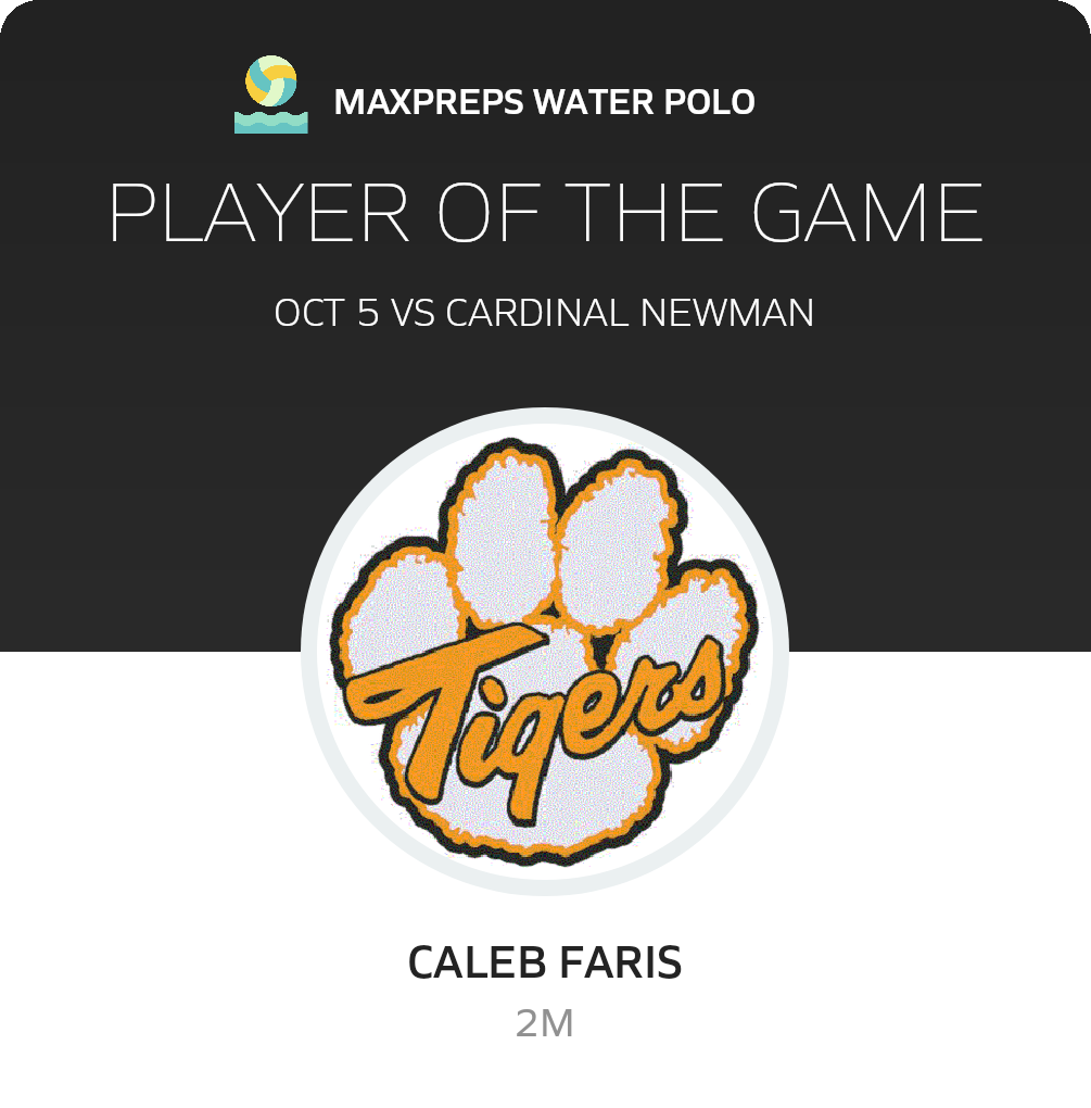 Congratulations to #13 Caleb Faris for being selected the Roseville JV Water Polo Player of the Game.