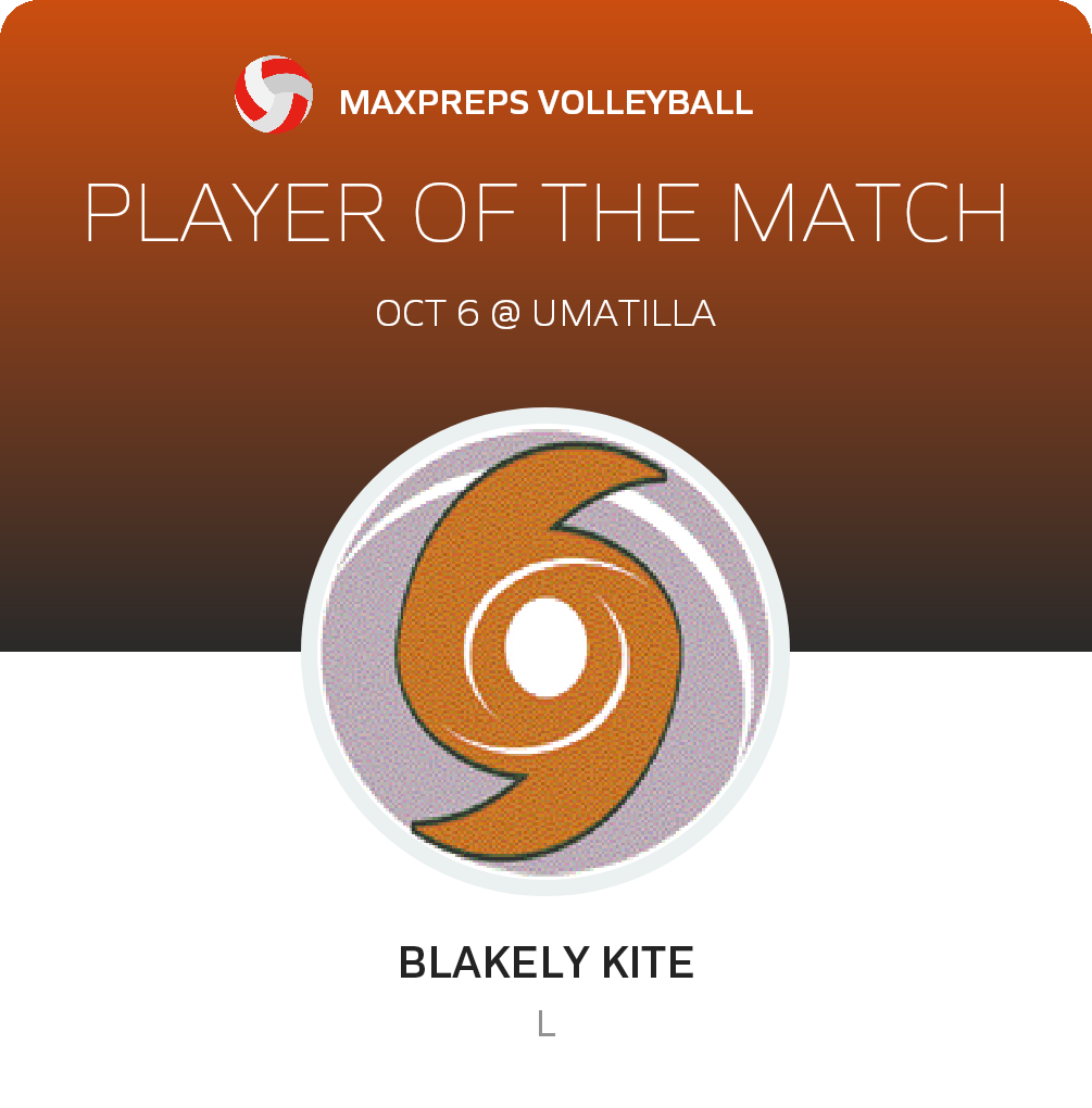 Congratulations to #2 Blakely Kite for being selected the Mount Dora Volleyball Player of the Match.