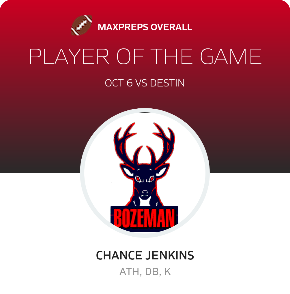 With the win, Bozeman upgrades its record to 6-0 on the season. The Bucks travel to Port St. Joe (Port St. Joe, FL) to encounter the Tiger Sharks in a non-league outing on Friday, October 13. The Tiger Sharks go into the outing with a record of 4-2. Port St. Joe won 39-9 in their recent non-league outing against Vernon (Vernon, FL)