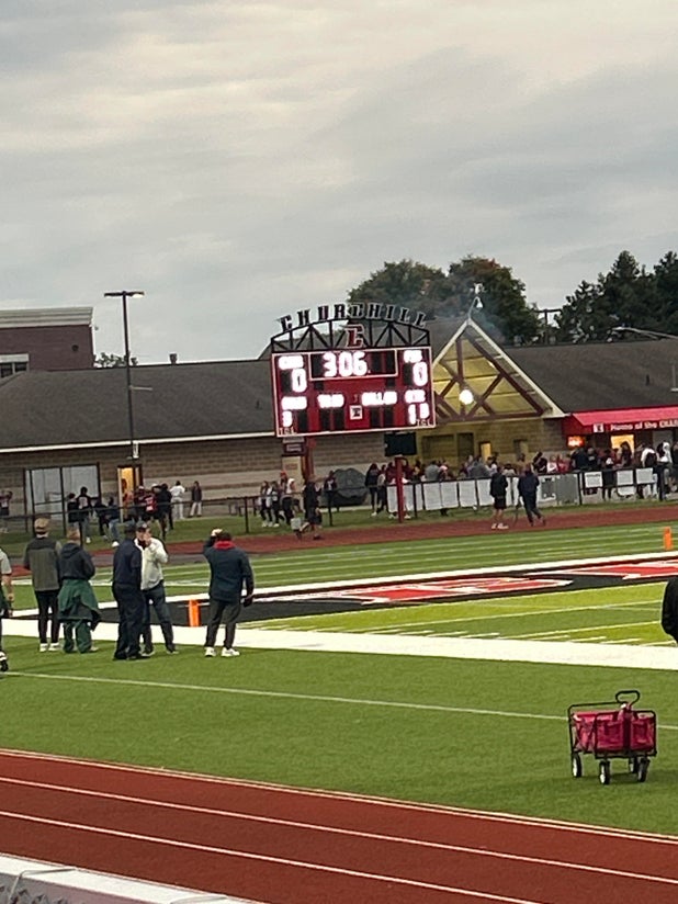 October 6, 2023: Livonia, MI 48150 In Friday's league match, the visiting Franklin Patriots football squad scored a close 22-21 victory over the Churchill Chargers.