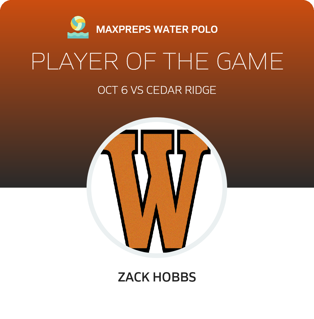 Congratulations to #7 Zack Hobbs for being selected the Round Rock Westwood Water Polo Player of the Game.