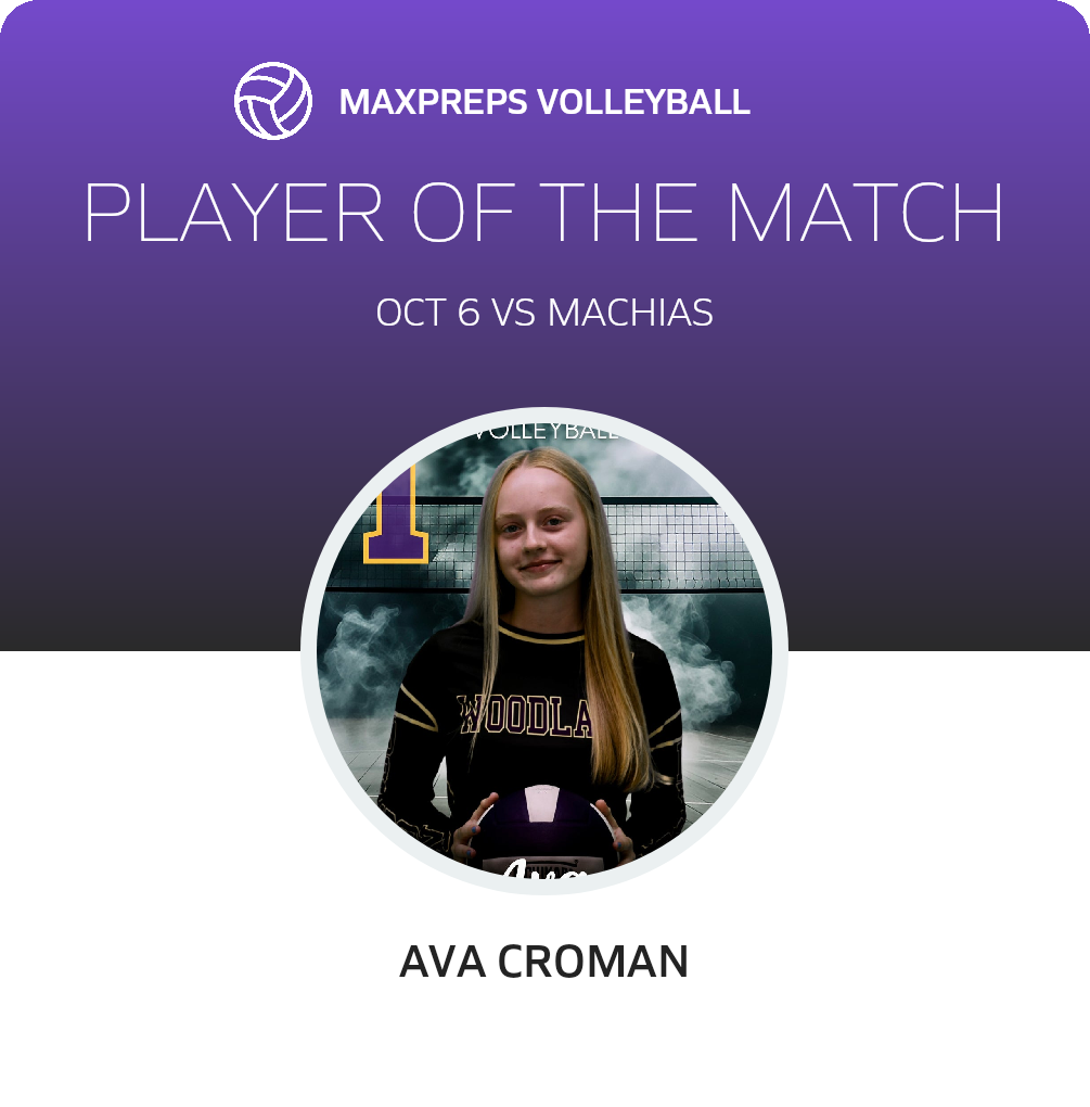 Congratulations to #1 Ava Croman for being selected the Woodland Volleyball Player of the Match.