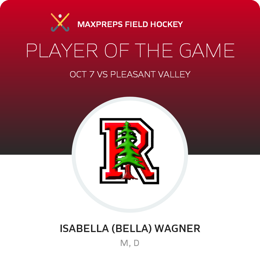 Congratulations to #6 Isabella (Bella) Wagner for being selected the Redwood Field Hockey Player of the Game.