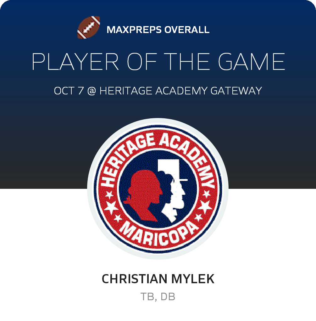 The Heritage Academy Gateway (Queen Creek, AZ) varsity football team lost Friday's home conference game against Heritage Academy (Maricopa, AZ) by a score of 30-14.