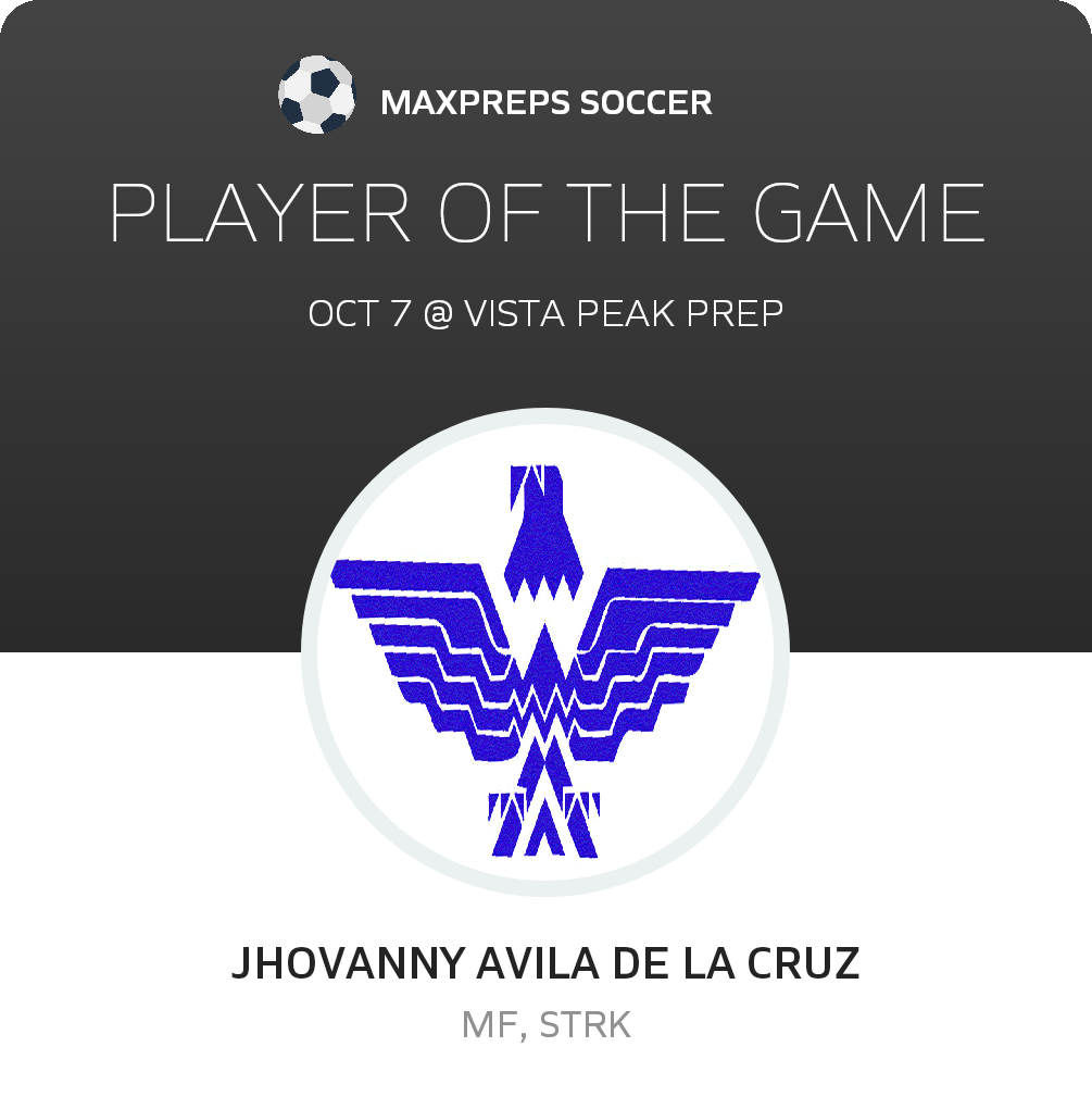 Congratulations to #11 Javier Mata for being selected the Vista PEAK Prep Soccer Player of the Match.