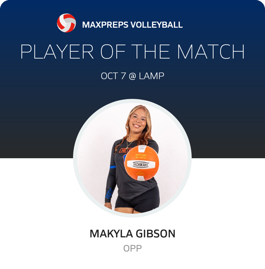 Congratulations to #1 MaKyla Gibson for being selected the Chilton County JV Volleyball Player of the Match.