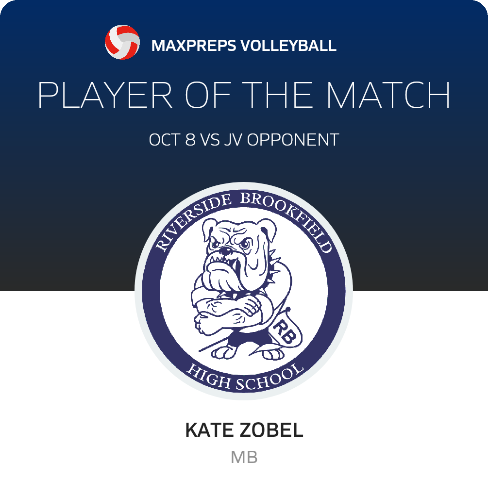 Congratulations to #8 Kate Zobel for being selected the Riverside-Brookfield JV Volleyball Player of the Match.
