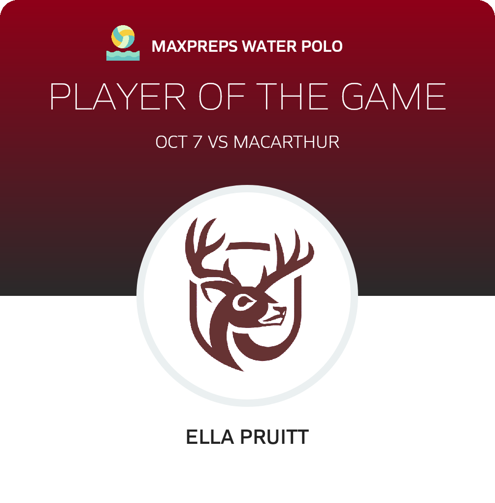 Congratulations to #5 Ella Pruitt for being selected the Deer Park Girls Water Polo Player of the Game.