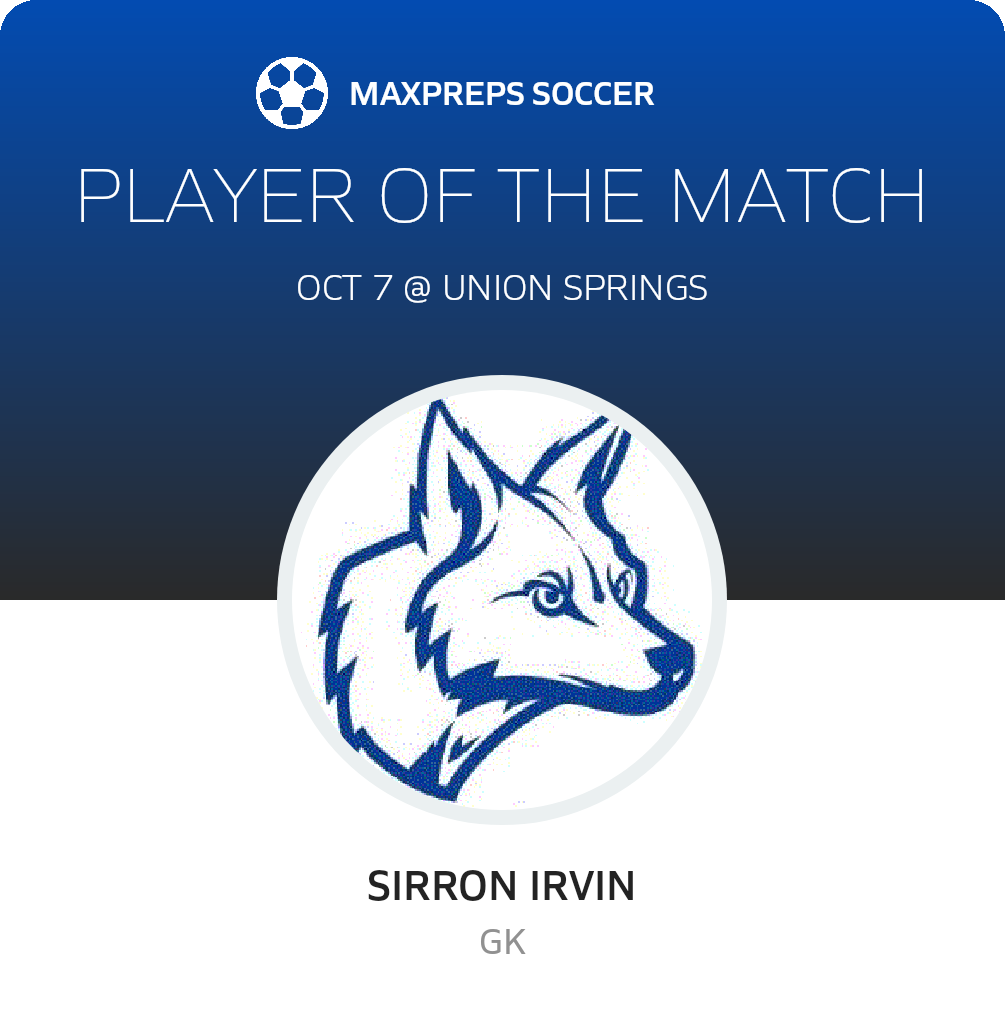 Congratulations to Sirron Irvin for being selected the Candor Soccer Player of the Match.